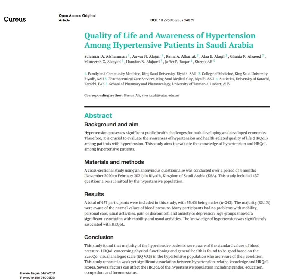 2. جودة الحياة والوعي بارتفاع ضغط الدم لدى مرضى ارتفاع ضغط الدم في المملكة العربية السعودية