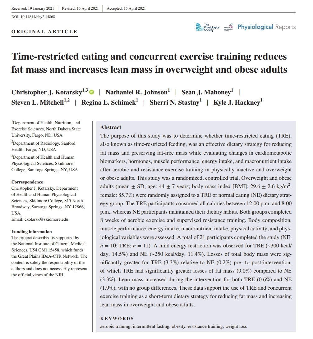 3. الأكل المحدود بالوقت والتمارين الرياضية المتزامنة يقللان من كتلة الدهون ويزيدان الكتلة الخالية من الدهون لدى البالغين الذين يعانون من زيادة الوزن والسمنة